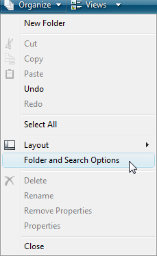 - Click on the tab 'View' and then search the entry 'Hidden files and folders'.
